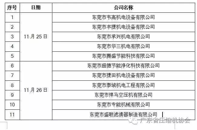 协会讯,为增强会员之间深层次的互动、交流,了解企业的自身发展情况,关心企业解决所面临共性问题、实际困难和需求。2016年11月25日至26日,由广东省压缩机协会会长白纯波、协会东莞片区负责人林添、生胡道胜,及协会秘书处林春庆、宋文杰组成的走访工作小组进行了第四期“走进企业,智享新悦”成员走访活动。